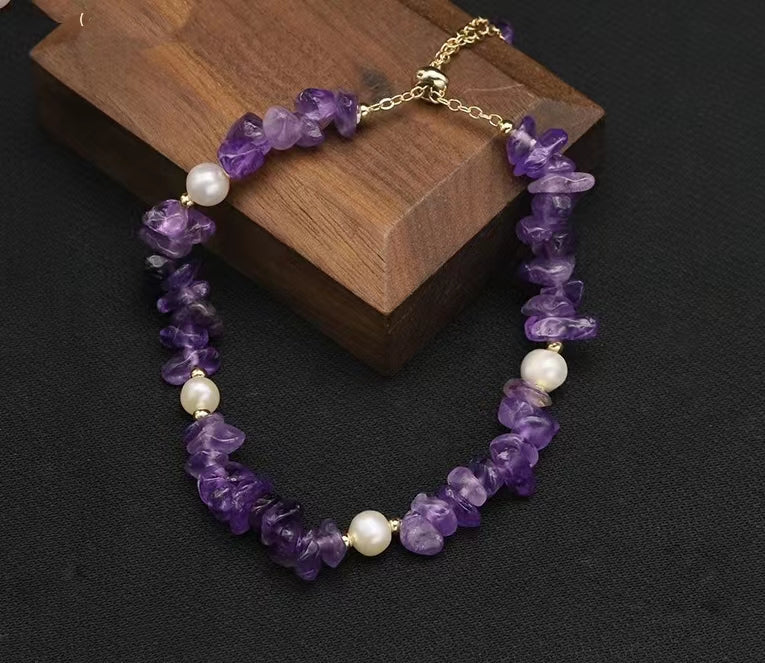 - Amethyst & Pearl: Rich purple amethyst stones paired with creamy white pearls for regal sophistication