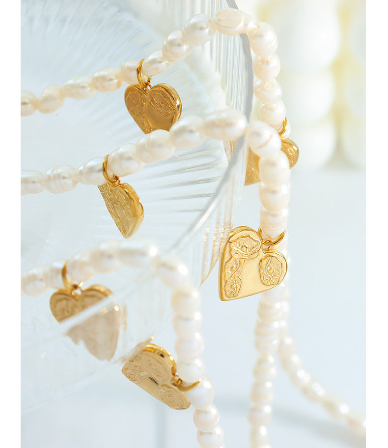 Genuine Freshwater Pearl Titanium Steel Love Coin Necklace