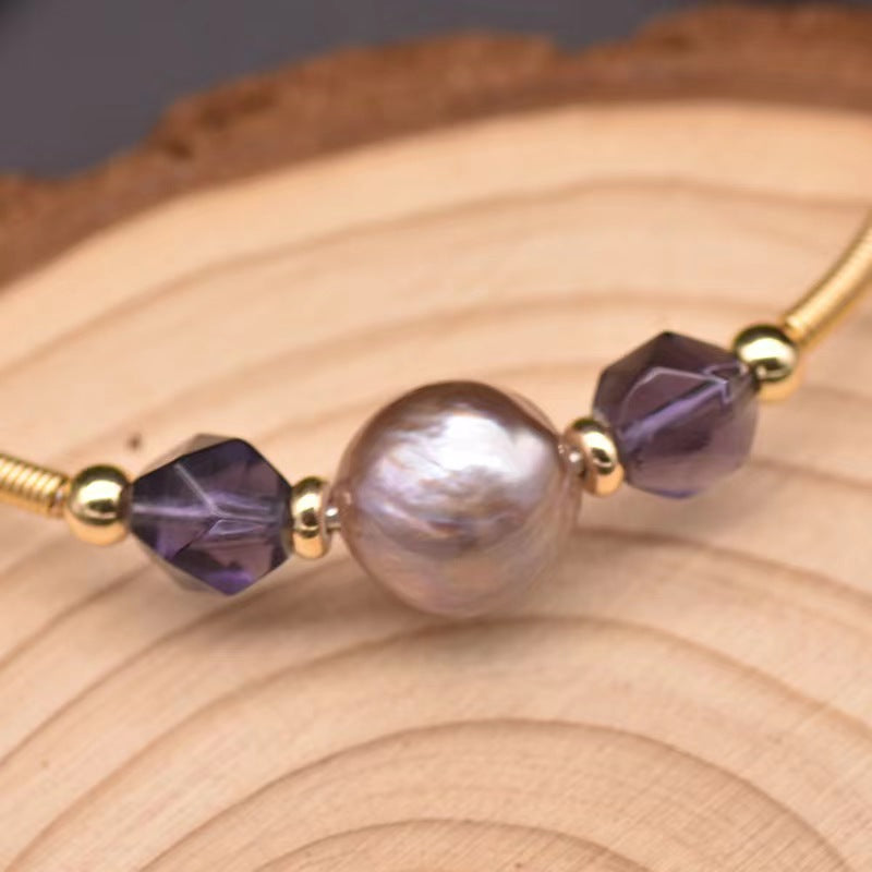 Genuine Freshwater Purple Baroque Pearl & Amethyst Bracelet (Limited Edition)