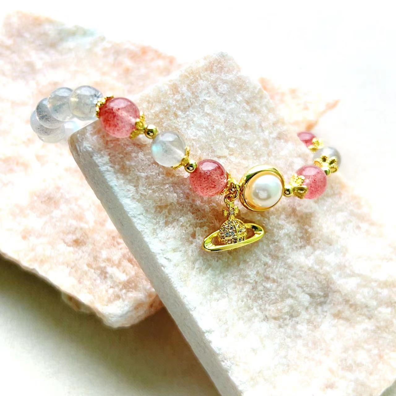 Moonstone & Strawberry Crystal Saturn Bracelet