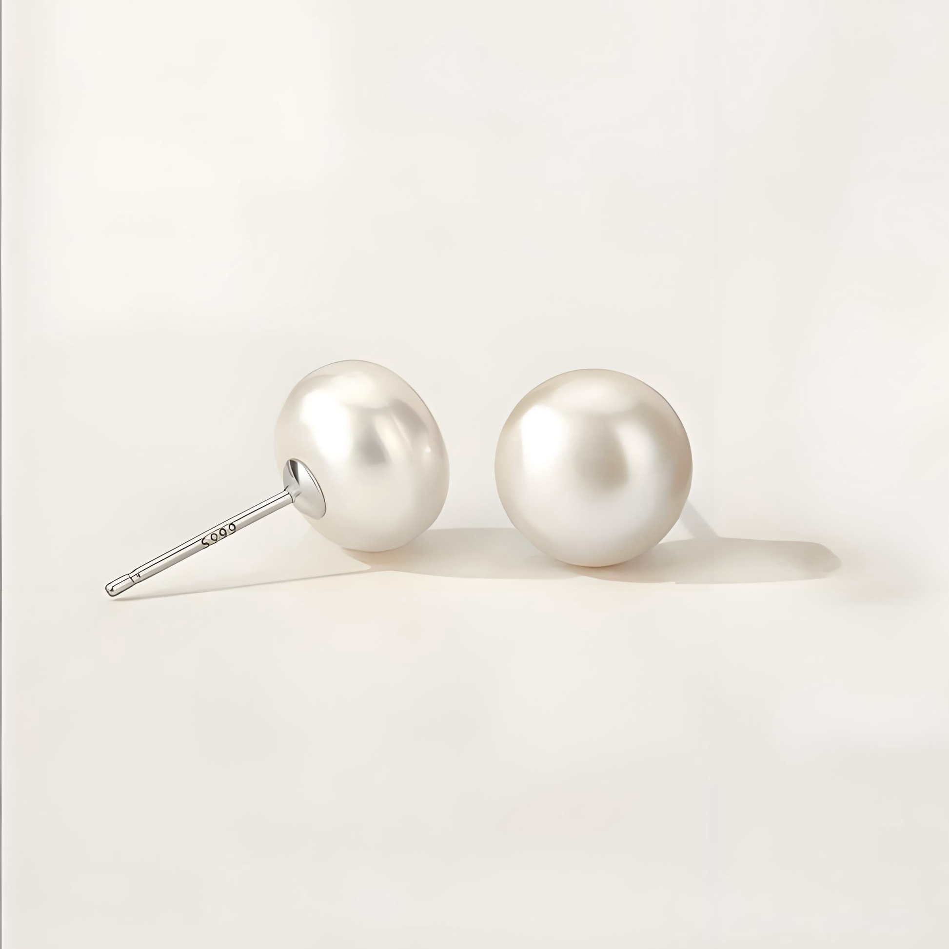 S925 Silver 4-10mm White Freshwater Button Pearl Stud Earrings