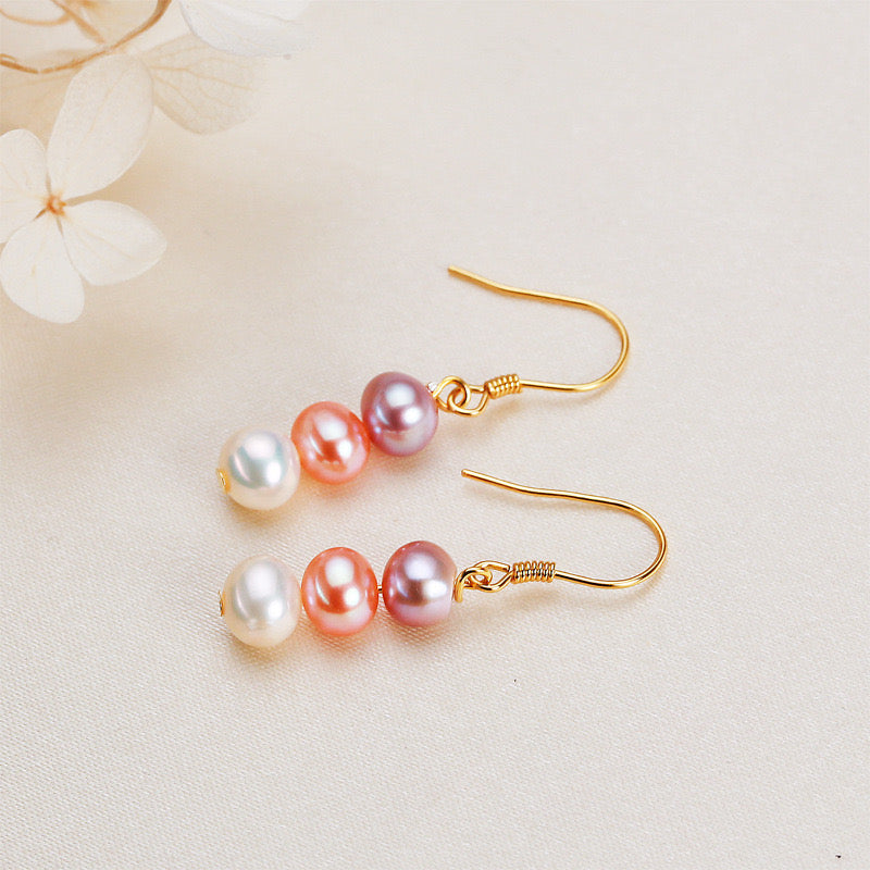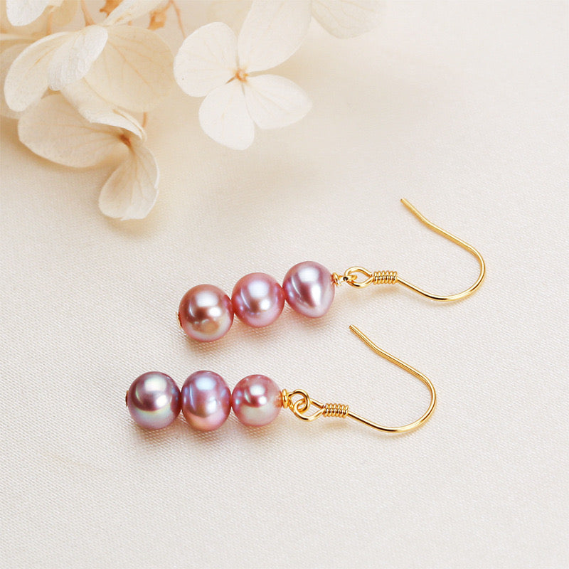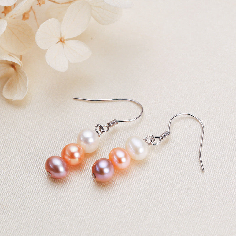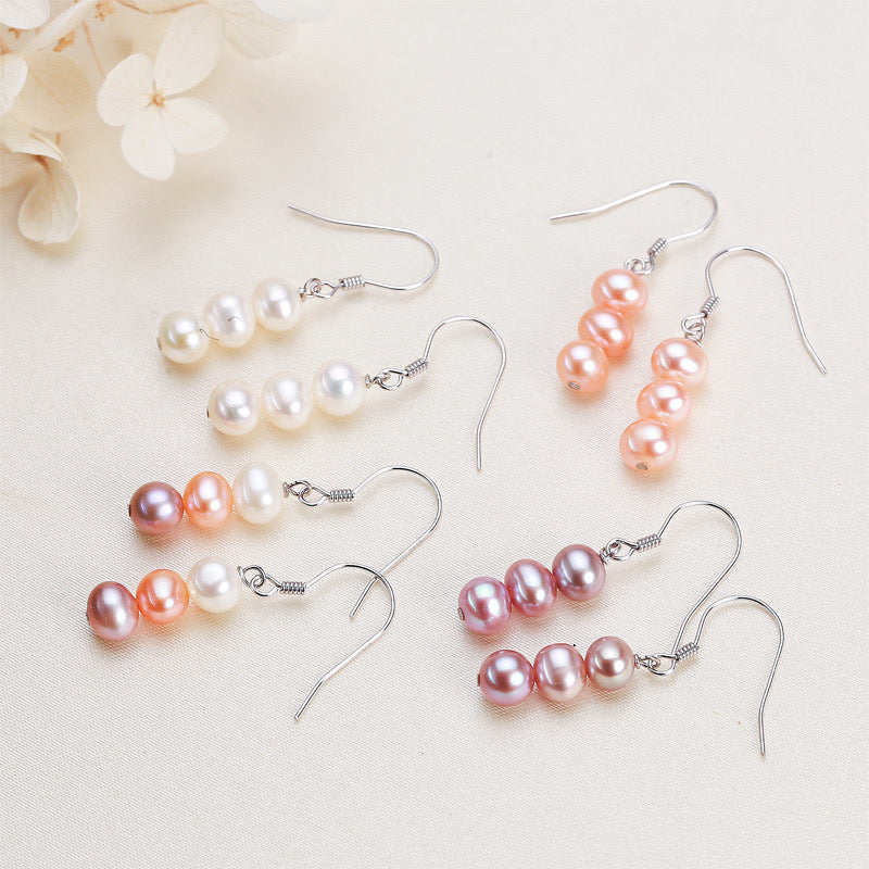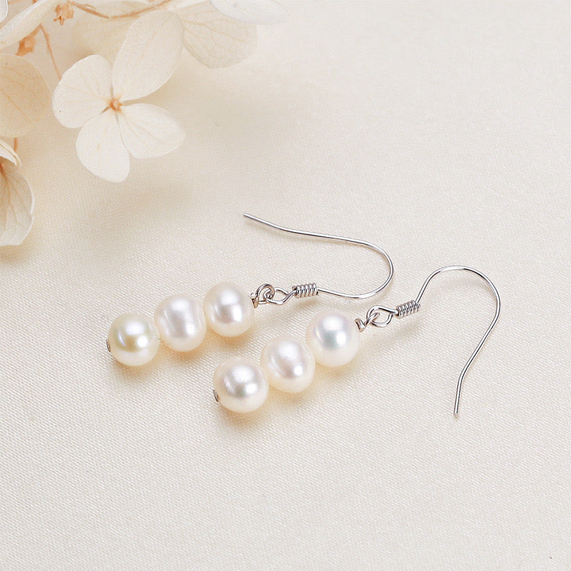 Solid S925 Silver Genuine Freshwater Pearl Gourd Earring